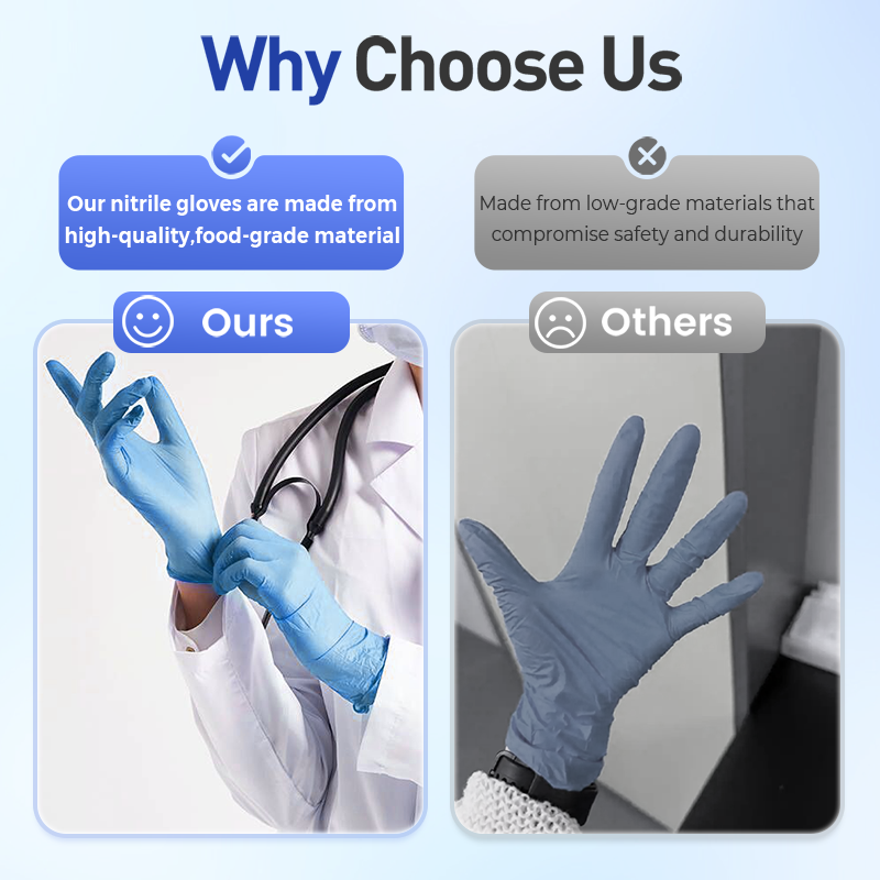 FOOD-GRADE SAFETYĀ ā Our nitrile gloves are made from high-quality, food-grade material, ensuring safe handling of food items. Ideal for kitchens, catering, and food service, they meet strict safety standards for food preparation.