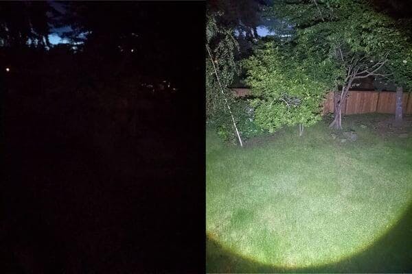 Arrived on time ready and to go with about a half charge. I placed on charger and about 30 minutes was fully charged. I live up in the mountains in bear, Linx, fox, bobcat and coyote territory and this Spot light works as it should with an exceptionally powerful beam.