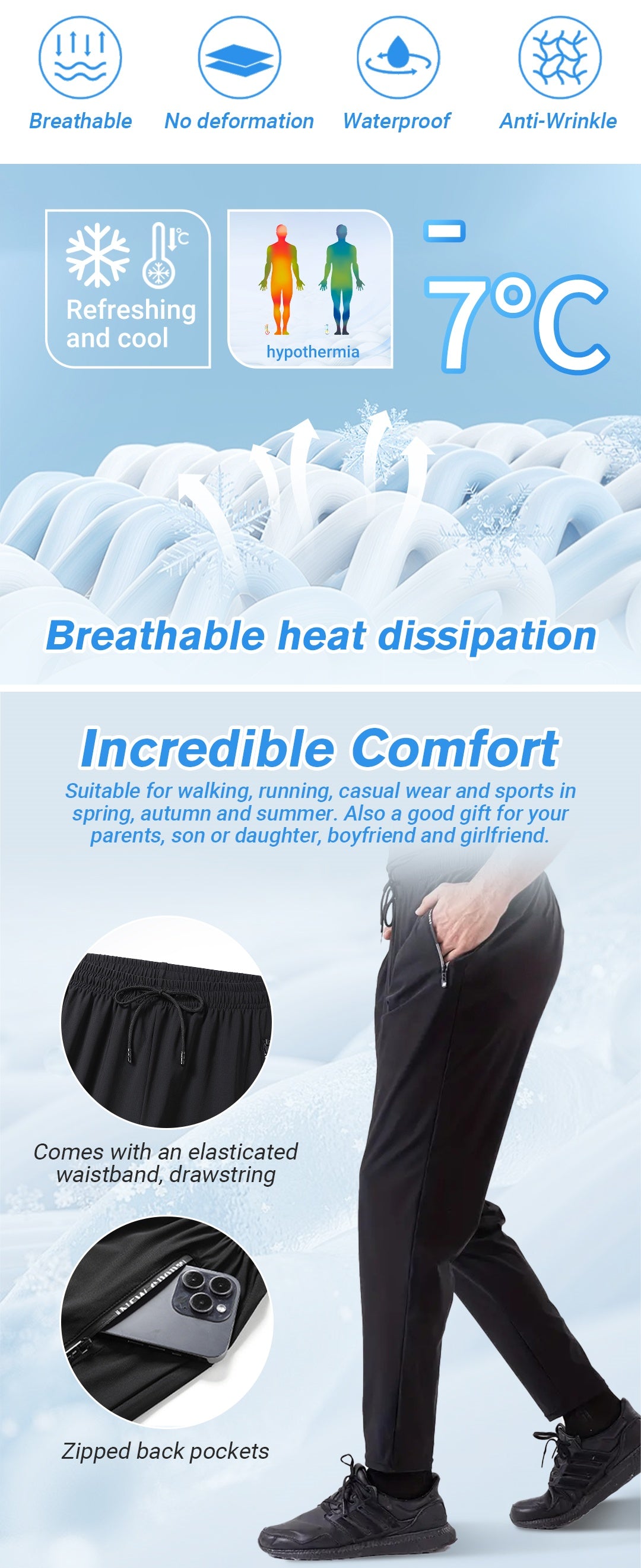 Unisex Ultra High Stretch Quick Dry Pants is made from advanced fibers that offer a cool touch, wick moisture and release heat. These pants ensure you stay dry as if they're breathing, maintaining a fresh feel all day.