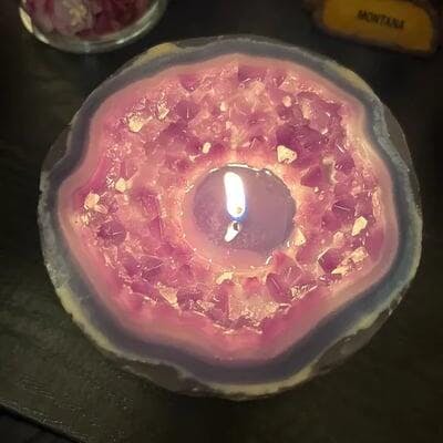 - 100% wax candle holder with real rose quartz crystal in the base to focus the energy.